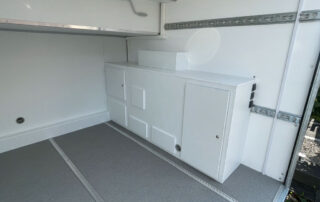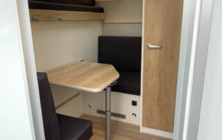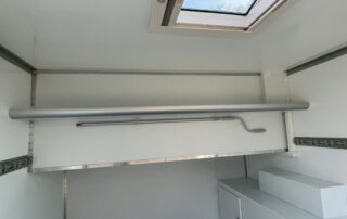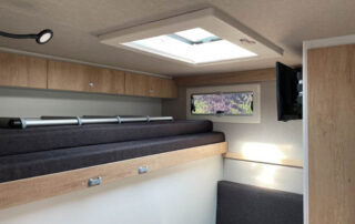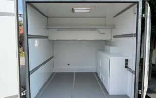 Unsere Ausbauten bieten alles was du unterwegs benötigst. Dusche, geräumiges Schalfplätze, Kühlschrank und TV. Ein Standard wie im Hotelzimmer. Im Heck eine sehr große Garage für bis zu zwei Motorräder. Perfekt für WE-Renn-Einsätze und Urlaubsreisen.